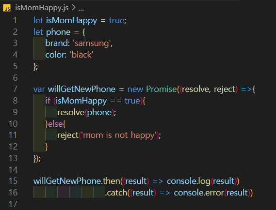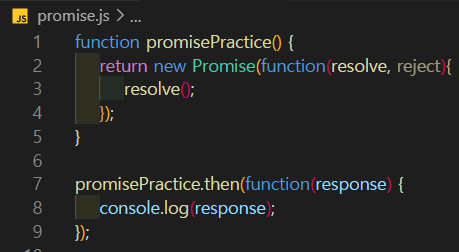 콜백 함수의 인자 resolve를 위와 같이 실행하면 이행 상태이다.