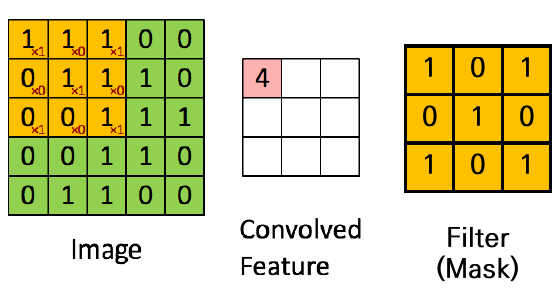 ์ฒ๋ฆฌํ๊ณ ํ๋ ํฝ์ ๊ฐ์ ์ด์ ํฝ์ ๊ณผ ๊ฐ๊ฐ์ ๋์ํ๋ 2์ฐจ์ ๋ฐฐ์ด ๋ด์ ๊ฐ์ค์น(ํํฐ์ ๊ฐ)๋ฅผ ๊ณฑํ์ฌ ๊ณฑํ ๊ฐ๋ค์ ๋ชจ๋ ๋ํ ๊ฐ์ผ๋ก ๋ณ๊ฒฝํ๋ ์ฐ์ฐ