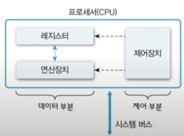 | 제어 버스 | 프로세서가 시스템의 구성요소를 제어하는데 사용, 제어 신호로 연산종류 결정, 메인메모리의 읽고 쓰는 동작 결정 |