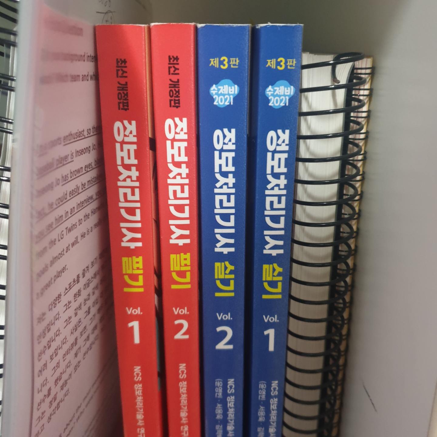필기와 실기책을 전부 합치면 저 정도의 두께가 된다.