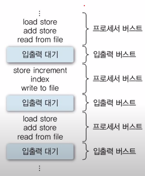 프로세스는 CPU를 사용하고 I/O를 대기하고 사용하면서 수행된다. CPU burst란 CPU 사용시간을 이야기하고 I/O burst란 I/O대기 시간을 이야기한다. Burst time은 스케줄링의 기준의 하나로써 CPU burst > I/O burst 라면 compute-bounded 라고한다. 반면에 CPU burst < I/O burst 라면 I/O-bounded라고 한다.